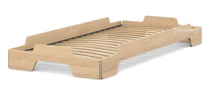 Le lit empilable, conçu en 1966 par Rolf Heide, conquit un large public grâce au savant mélange entre esthétique et fonction. Les côtés galbés attirent le regard et procurent une atmosphère conviviale dans la pièce où le lit est disposé. L’intelligence du système de construction est pensée avec un élément de liaison permettant d’empiler les lits les uns sur les autres. Selon l’envie ou la hauteur désirée, le système d’empilage répond aux diverses attentes tout en accordant un exceptionnel confort, digne d’une bonne literie. Il est ainsi possible d’accueillir un bon nombre de convives à coucher. C’est pourquoi, ce lit est particulièrement apprécié dans la chambre d’invités, dans les colocations, dans les gîtes et maisons d’hôtes. Également, les courbes du lit sont particulièrement adaptées pour la chambre d’enfant ou les dortoirs. Effectivement, l'absence de coins et de bords pointus est un sérieux avantage pour nos tendres bambins. La forme intéressante du lit permet d'économiser de l'espace et assure une stabilité. Disponible en différents types de bois et finitions, ce design correspond à tous les styles d’intérieurs et a été, à juste titre, considéré comme un classique moderne par le magazine « Home Sweet Home ».