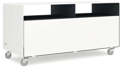 Meuble TV R 108, Blanc pur (RAL 9010) - Gris anthracite (RAL 7016), Roulettes industrielles