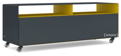 Meuble TV R 109 Bicolore   |Gris anthracite (RAL 7016) - Jaune signalisation (RAL 1023)|Roulettes transparentes