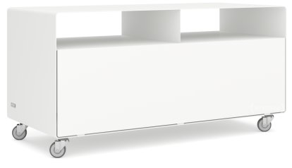 Meuble TV R 108, Blanc pur (RAL 9010), Roulettes industrielles