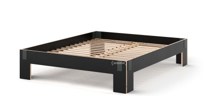 Lit Tagedieb, 180 x 200 cm, Sans tête de lit, FU (bouleau contreplaqué) noir, Anthracite , Avec sommier flexible
