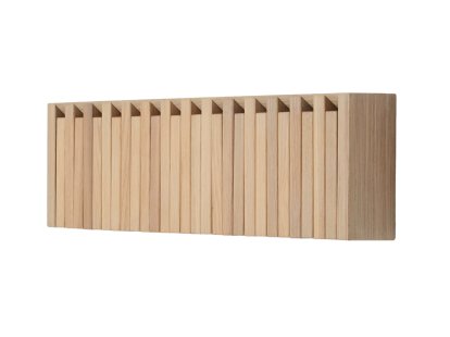 Les crochets flexibles du porte-manteau Xylo de Per/Use peuvent simplement être dépliés et repliés lorsqu'ils ne sont pas utilisés. Peu encombrant, le porte-manteau en bois de Patrick Seha, qui ressemble visuellement aux barres d'un xylophone, s'intègre parfaitement à tout intérieur. Sa profondeur lui permet également d'être utilisé comme une étagère pour les objets à garder à portée de main.