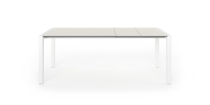 Table extensible Sushi, Stratifié gris sable, L 125-205 x l 80 cm, Aluminium laqué blanc