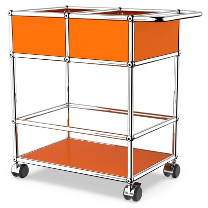 USM Haller chariot à boissons à étages avec compartiments, Orange pur RAL 2004, Souples pour sols durs