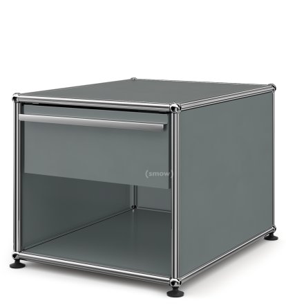 Table de chevet USM avec tiroir, Gris moyen RAL 7005, Petit (H 39 x l 42,5 x P 53 cm)