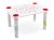 | Fonctions & Propriétés | Les pieds de table incolores sont creux et peuvent être remplis de papier ou décorés, par exemple. Chaque pied de table contient également une boîte à crayons orange. |