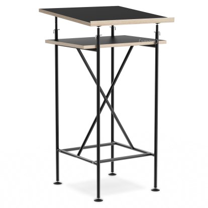 Le bureau en hauteur Milla d’Otto Sudrow se caractérise par sa simplicité, son prix raisonnable et son principe de construction ingénieux. Ce dernier permet en outre de démonter ou remonter rapidement et facilement le pupitre. Le designer Otto Sudrow s’est appuyé sur le principe de construction de la table Eiermann produite depuis 1933 par Richard Lampert, ce qui explique entre autre que Milla soit surnommée « pupitre Eiermann ». Ce « pupitre Eiermann » convient alors parfaitement à tous ceux qui aiment lire et travailler debout ou qui ont à faire des discours. Mais le bureau Milla s’adapte aussi à ses utilisateurs : les barres d’extension permettent de régler la hauteur du plateau entre 105 et 135 cm. De plus, la stabilité de la table, même sur des sols irréguliers, est toujours assurée par les pieds, eux aussi réglables en hauteur. Enfin, un repose-pied est intégré à la partie inférieure, ce qui permet de bénéficier d’un confort optimal en position debout.