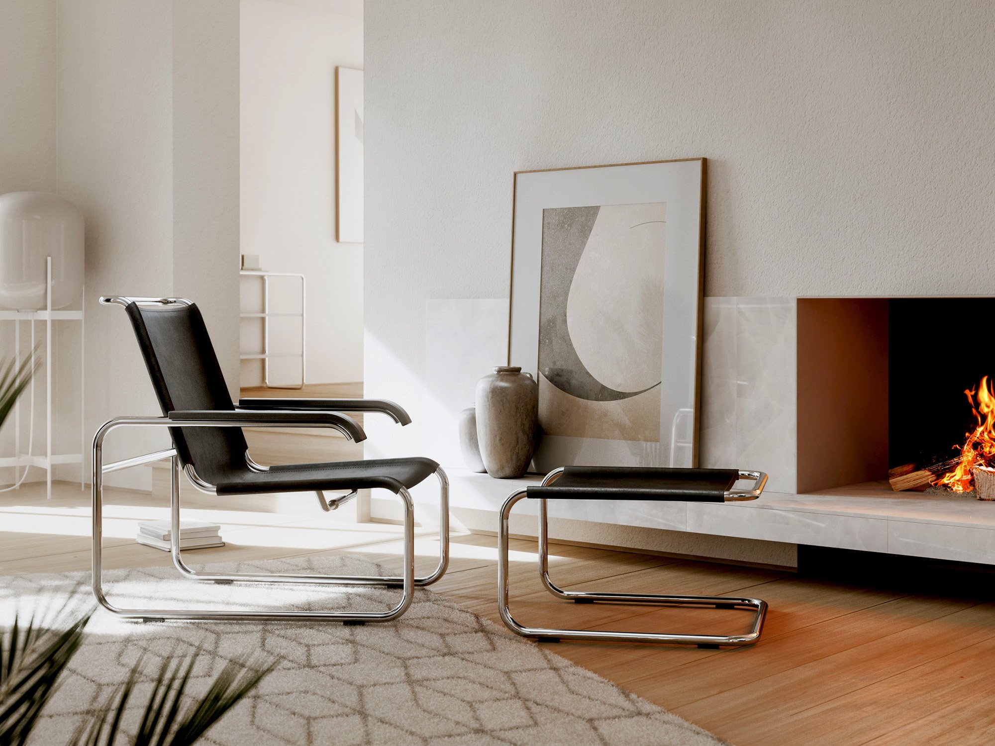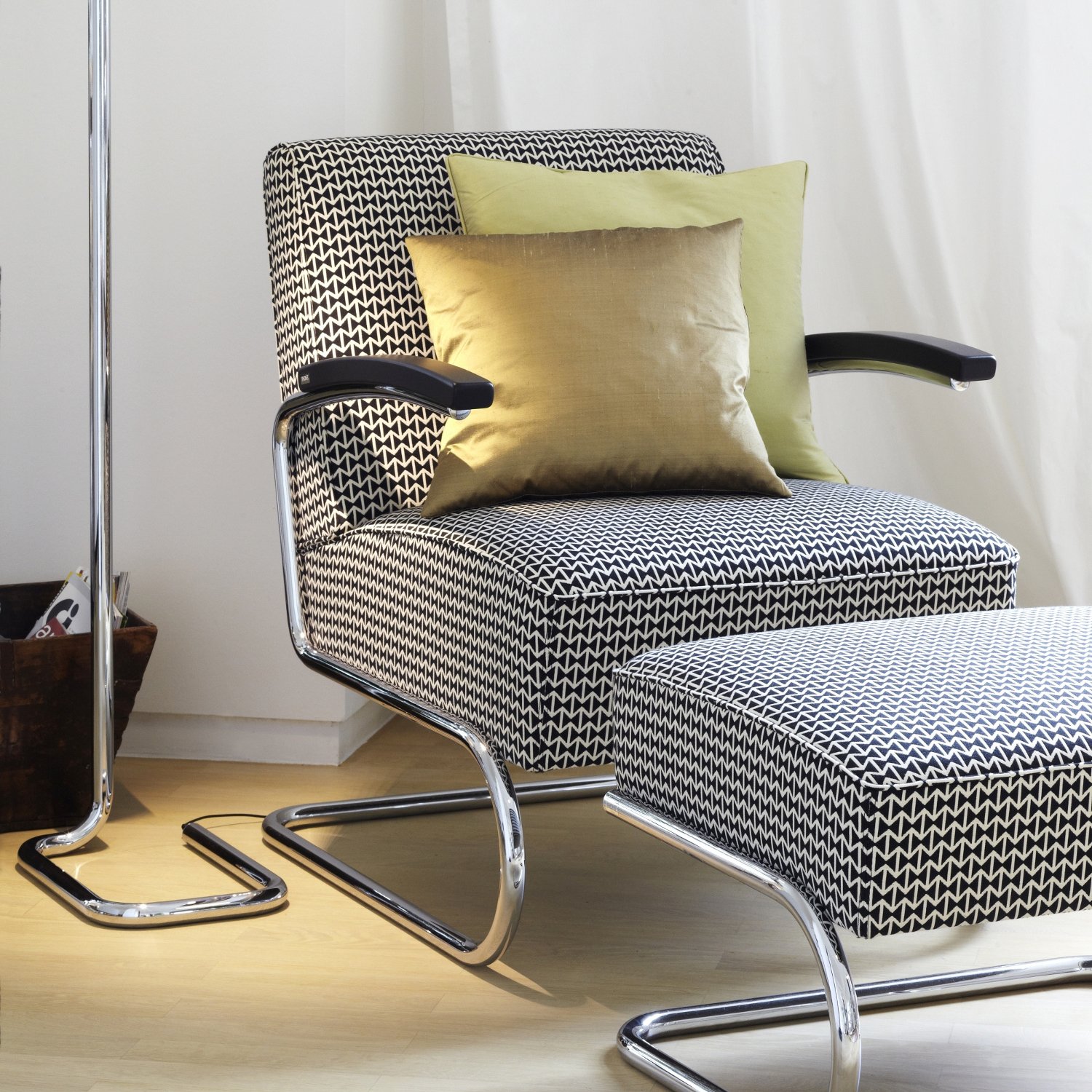 Le fauteuil cantilever S 411 de Thonet et le repose-pieds assorti créent un ensemble parfait pour la détente
