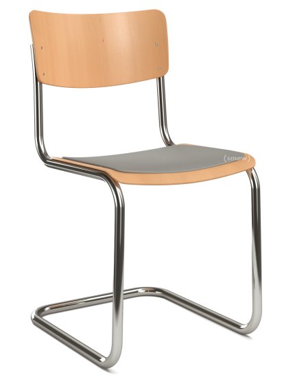 Chaise cantilever S 43 classique, Piétement chromé, Hêtre teinté, Hêtre naturel, Coussin d'assise sans rembourrage mélange gris clair, Patins en plastique noir avec feutre