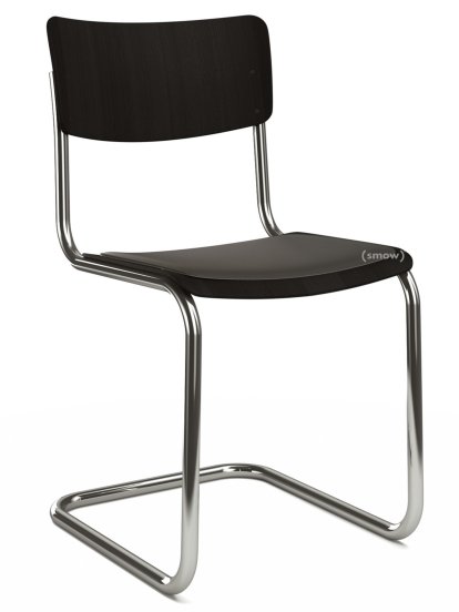 Chaise cantilever S 43 classique, Piétement chromé, Hêtre teinté, Noir (TP 29), Coussin d'assise avec rembourrage noir, Patins en plastique noir avec feutre