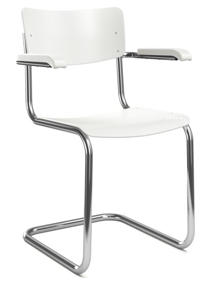 Chaise cantilever S 43 F classique avec accotoirs Piétement chromé|Hêtre laqué|Blanc pur (RAL 9010)|Sans coussin d'assise|Sans patins