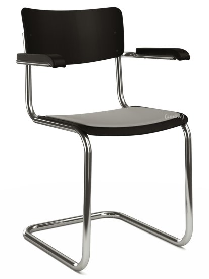 | Variantes | Assise et dossier: hêtre contreplaqué laqué, teinté ou vernis structuré Cadre: acier chromé ou brossé satiné En option avec coussin d'assise en feutre rembourré/non rembourré En option avec patins pour sols durs La version sans accotoirs S 43 Classique et Chaise S 43 Classiques en Couleur est également disponible |