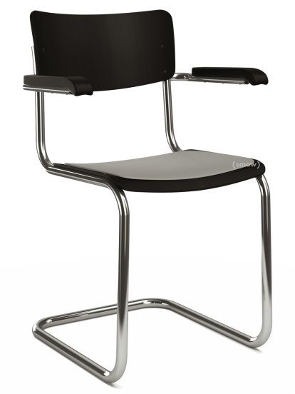 Chaise cantilever S 43 F classique avec accotoirs, Piétement chromé, Hêtre teinté, Noir (TP 29), Coussin d'assise avec rembourrage noir, Sans patins