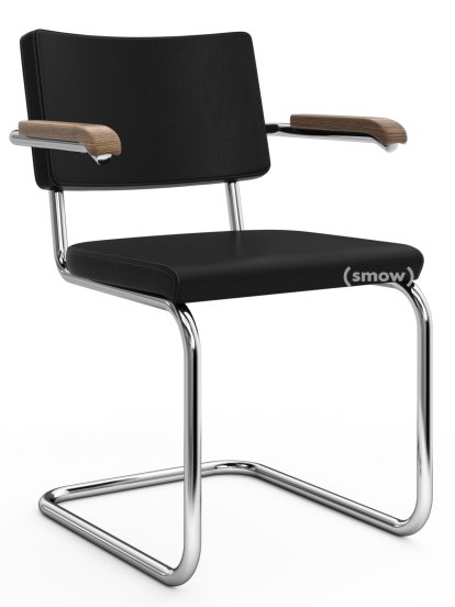 Chaise cantilever S 64 PV Pure Materials, Cuir Nappa noir, Noyer, Chromé, Sans patins