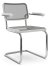 | Matériaux | Piètement: tube d'acier chromé Assise et dossier: cannage ou filet synthétique Accotoirs: hêtre teinté ou lasuré blanc Patins (facultatif): plastique, noir |