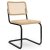 | Matériaux | Cadre: bois massif chêne ou frêne ou noyer, finition à laqué Assise/dossier : cannage avec tissu de soutien sous l'assise Piètement : tube d'acier chromé ou revêtu par poudre noir profond Patins (facultatif): plastique, noir |