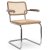 | Matériaux | Cadre/accotoirs : bois massif chêne ou frêne ou noyer, finition à laqué Assise/dossier : cannage avec tissu de soutien sous l'assise Piètement : tube d'acier chromé ou revêtu par poudre noir profond Patins (facultatif): plastique, noir |