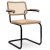 | Matériaux | Cadre/accotoirs : bois massif chêne ou frêne ou noyer, finition à laqué Assise/dossier : cannage avec tissu de soutien sous l'assise Piètement : tube d'acier chromé ou revêtu par poudre noir profond Patins (facultatif): plastique, noir |