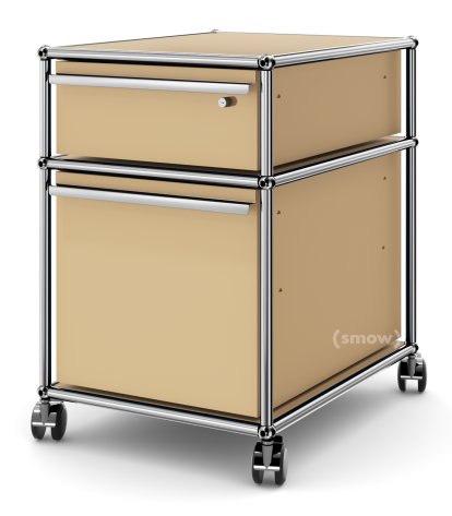 Caisson à roulettes USM Haller avec cadre pour dossiers suspendus, Serrure uniquement sur le tiroir A6, Beige USM