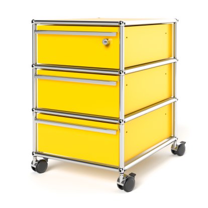 Caisson à roulettes USM Haller avec 3 tiroirs Type 1 , Serrure sur le tiroir du dessus, Jaune or RAL 1004