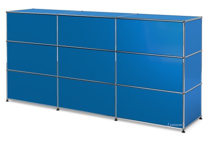 Comptoir d’accueil USM Haller version 1, Bleu gentiane RAL 5010, 225 cm (3 éléments), 50 cm