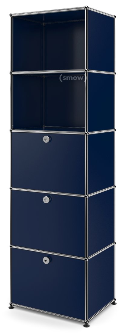 Bibliothèque 50 USM Haller, Avec 3 portes abattantes, Bleu acier RAL 5011