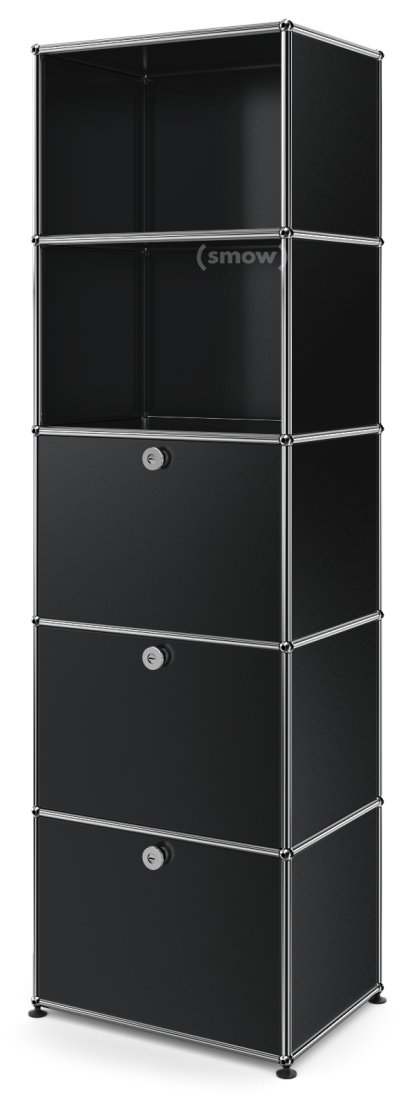 Bibliothèque 50 USM Haller, Avec 3 portes abattantes, Noir graphite RAL 9011