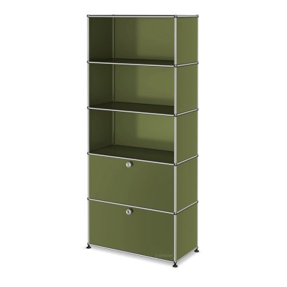 Étagère à dossiers USM Haller M, personnalisable, Vert olive RAL 6003, Ouvert, Ouvert, Avec porte abattante, Avec porte coulissante