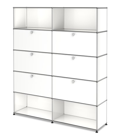 Étagère à dossiers L USM Haller, personnalisable, Blanc pur RAL 9010, Avec 2 portes abattantes, Avec 2 portes abattantes, Avec 2 portes abattantes, Ouvert