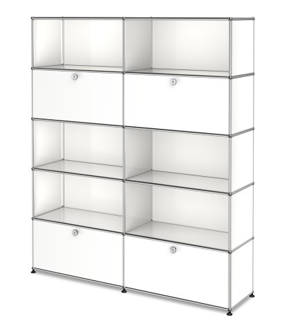 Étagère à dossiers L USM Haller, personnalisable, Blanc pur RAL 9010, Avec 2 portes abattantes, Ouvert, Ouvert, Avec 2 portes coulissantes