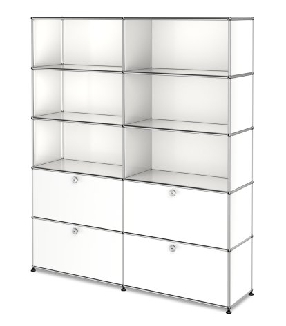 Étagère à dossiers L USM Haller, personnalisable, Blanc pur RAL 9010, Ouvert, Ouvert, Avec 2 portes abattantes, Avec 2 portes abattantes