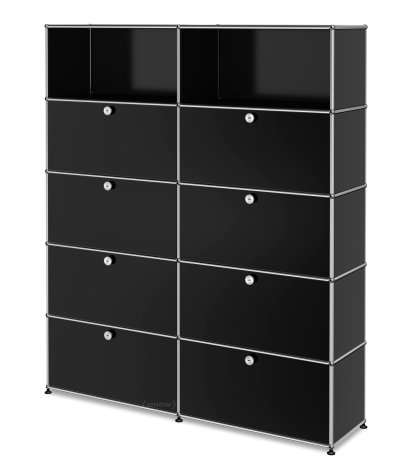 Étagère à dossiers L USM Haller, personnalisable, Noir graphite RAL 9011, Avec 2 portes abattantes, Avec 2 portes abattantes, Avec 2 portes abattantes, Avec 2 portes abattantes