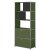 Étagère USM Haller, 2 abattants sans paroi arrière, avec 2 Soft Panels, verticale, Vert olive RAL 6003, Gris foncé / Gris