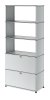 L'étagère USM Haller M24 avec 2 portes battantes et sans panneau arrière dans la partie supérieure offre beaucoup d'espace de rangement pour les dossiers, les documents de travail et les livres, mais n'a pas encore l'air trop massive en raison des compartiments ouverts. Fritz Haller et Paul Schärer ont développé dans les années 60 le système de meubles modulaires USM, qui est devenu au fil du temps un classique du design absolu.