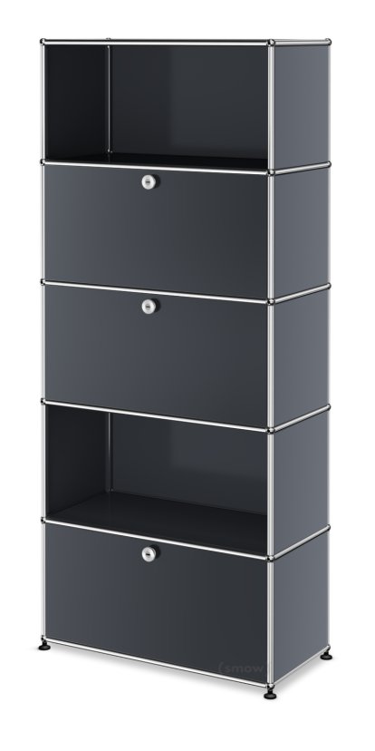 Étagère à dossiers USM Haller M, personnalisable, Anthracite RAL 7016, Avec porte abattante, Avec porte abattante, Ouvert, Avec porte coulissante