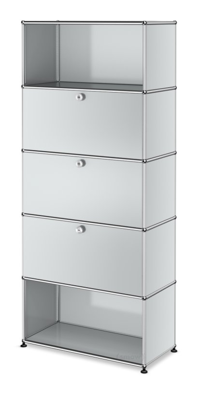 Étagère à dossiers USM Haller M, personnalisable, Gris clair RAL 7035, Avec porte abattante, Avec porte abattante, Avec porte abattante, Ouvert