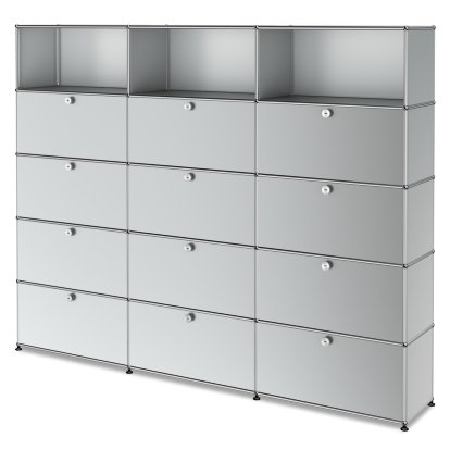 Étagère à dossiers XL USM Haller, personnalisable, Argent mat USM, Avec 3 portes abattantes, Avec 3 portes abattantes, Avec 3 portes abattantes, Avec 3 portes abattantes