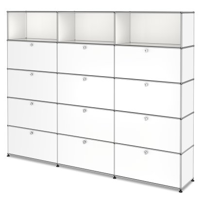 Étagère à dossiers XL USM Haller, personnalisable, Blanc pur RAL 9010, Avec 3 portes abattantes, Avec 3 portes abattantes, Avec 3 portes abattantes, Avec 3 portes abattantes