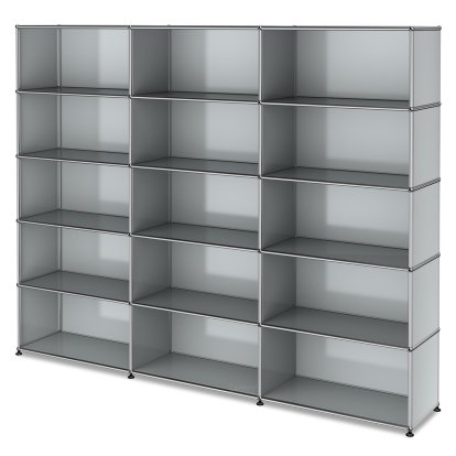Étagère à dossiers XL USM Haller, personnalisable, Gris clair RAL 7035, Ouvert, Ouvert, Ouvert, Ouvert