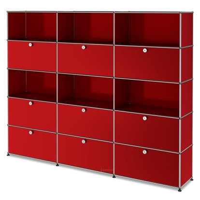Étagère à dossiers XL USM Haller, personnalisable, Rouge rubis USM, Avec 3 portes abattantes, Ouvert, Avec 3 portes abattantes, Avec 3 portes abattantes