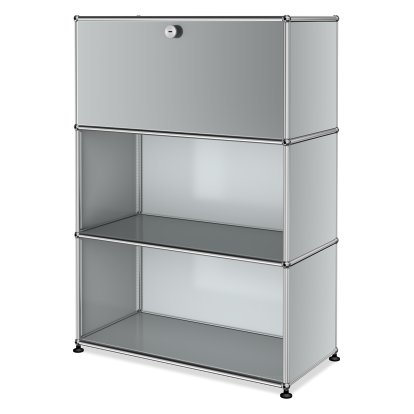 Meuble haut Highboard M USM Haller, personnalisable, Gris clair RAL 7035, Avec porte abattante, Ouvert, Ouvert