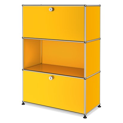 Meuble haut Highboard M USM Haller, personnalisable, Jaune or RAL 1004, Avec porte abattante, Ouvert, Avec porte abattante