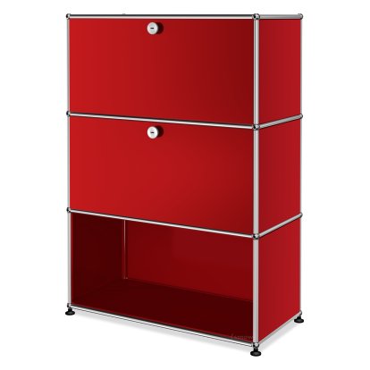 Meuble haut Highboard M USM Haller, personnalisable, Rouge rubis USM, Avec porte abattante, Avec porte abattante, Ouvert