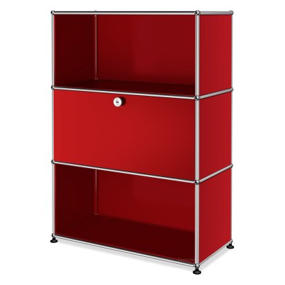 Meuble haut Highboard M USM Haller, personnalisable, Rouge rubis USM, Ouvert, Avec porte abattante, Ouvert