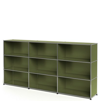 Meuble haut Highboard XL USM Haller, personnalisable, Vert olive RAL 6003, Ouvert, Ouvert, Ouvert