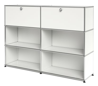 Meuble haut Highboard L USM Haller, personnalisable, Blanc pur RAL 9010, Avec 2 portes abattantes, Ouvert, Ouvert