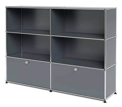 Meuble haut Highboard L USM Haller, personnalisable, Gris moyen RAL 7005, Ouvert, Ouvert, Avec 2 portes abattantes
