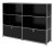 Meuble haut Highboard L USM Haller, personnalisable, Noir graphite RAL 9011, Ouvert, Ouvert, Avec 2 portes abattantes