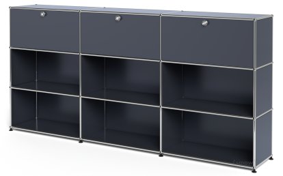Meuble haut Highboard XL USM Haller, personnalisable, Anthracite RAL 7016, Avec 3 portes abattantes, Ouvert, Ouvert