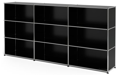 Meuble haut Highboard XL USM Haller, personnalisable, Noir graphite RAL 9011, Ouvert, Ouvert, Ouvert